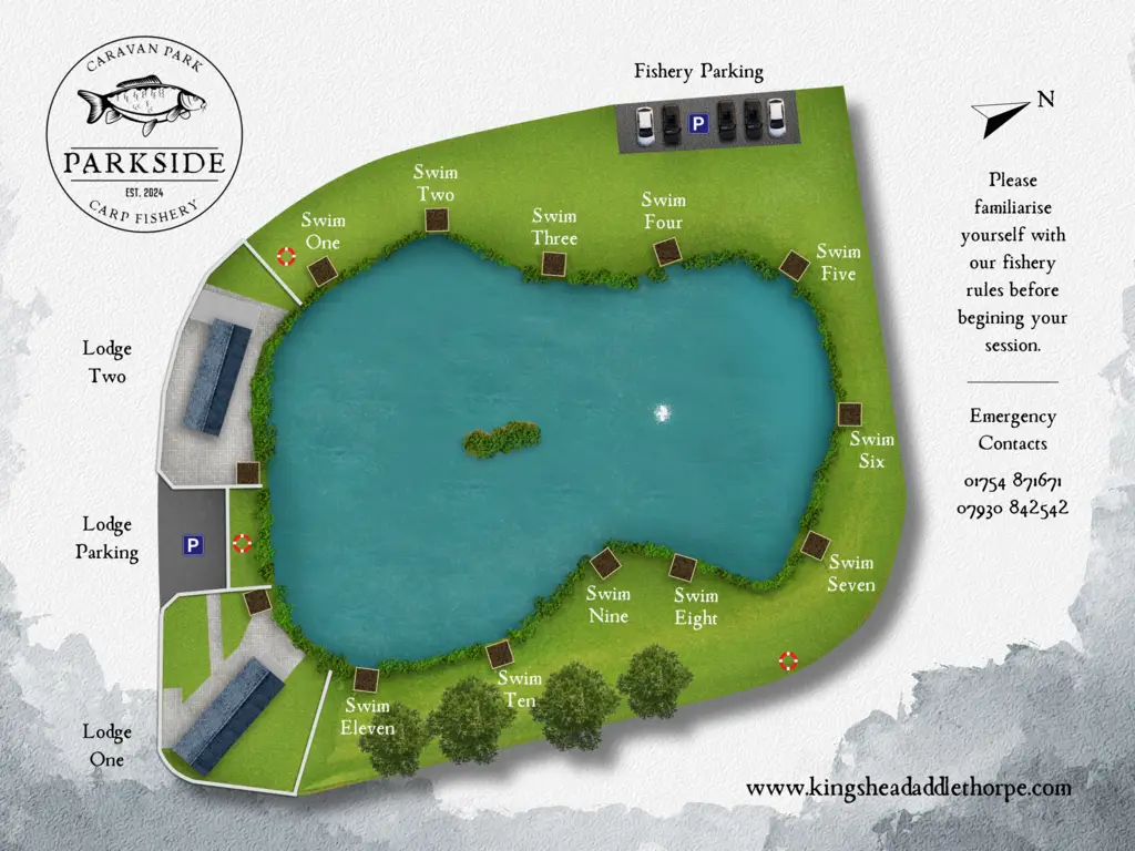 At Parkside Lake, we offer an unmatched fishing experience in stunning surroundings. Picture casting your line into our waters, embraced by greenery and a stones throw from luxury living. Whether you’re an expert or just starting out, our well-stocked lake welcomes everyone over the age of 15. However for safety, Anglers under 18 must be accompanied by an adult.